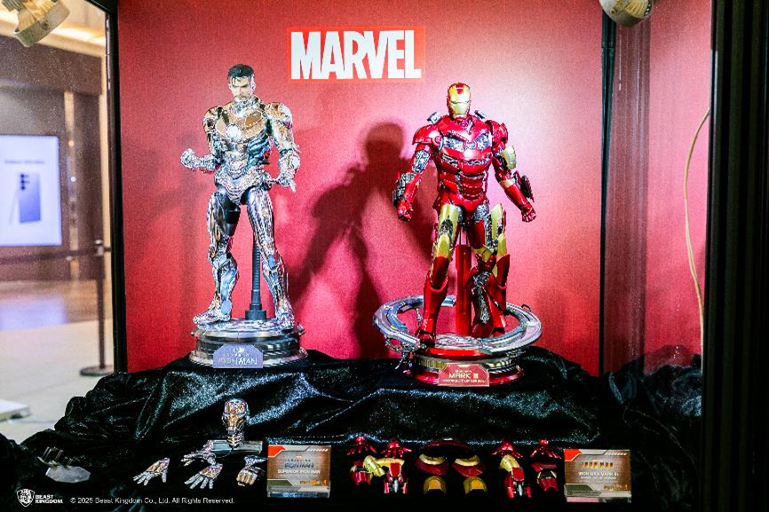 展覽首度在台灣公開展示了 4 款超限定版頂級收藏手辦,包括漫威影業《鋼鐵人 2》的鋼鐵人 MK4(幻彩白幾何限定版)、《死侍與金鋼狼》的金鋼狼(經典棕色限定版)、跨界合作的《異形戰:復仇者聯盟》邁爾斯·莫拉萊斯(限定版),以及《捍衛任務 John Wick》的約翰·維克(限定版)。