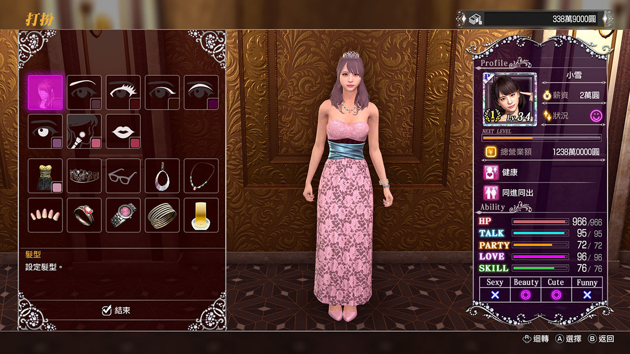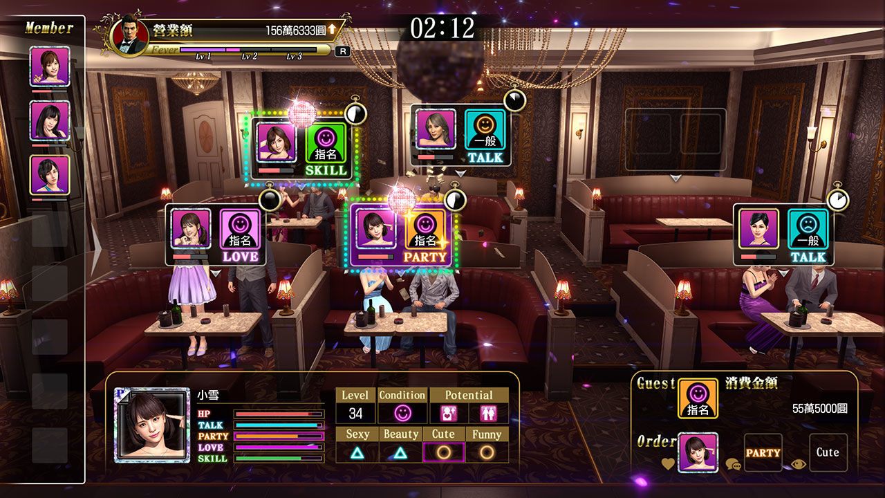 只要能安排符合顧客喜好的小姐,顧客就會花更多錢。數十名小姐的能力各有千秋,培養她們後能力會提升,能讓顧客更加滿意。掌握顧客的喜好,一邊培養小姐提升業績,努力成為全國 No.1 的公關俱樂部吧!