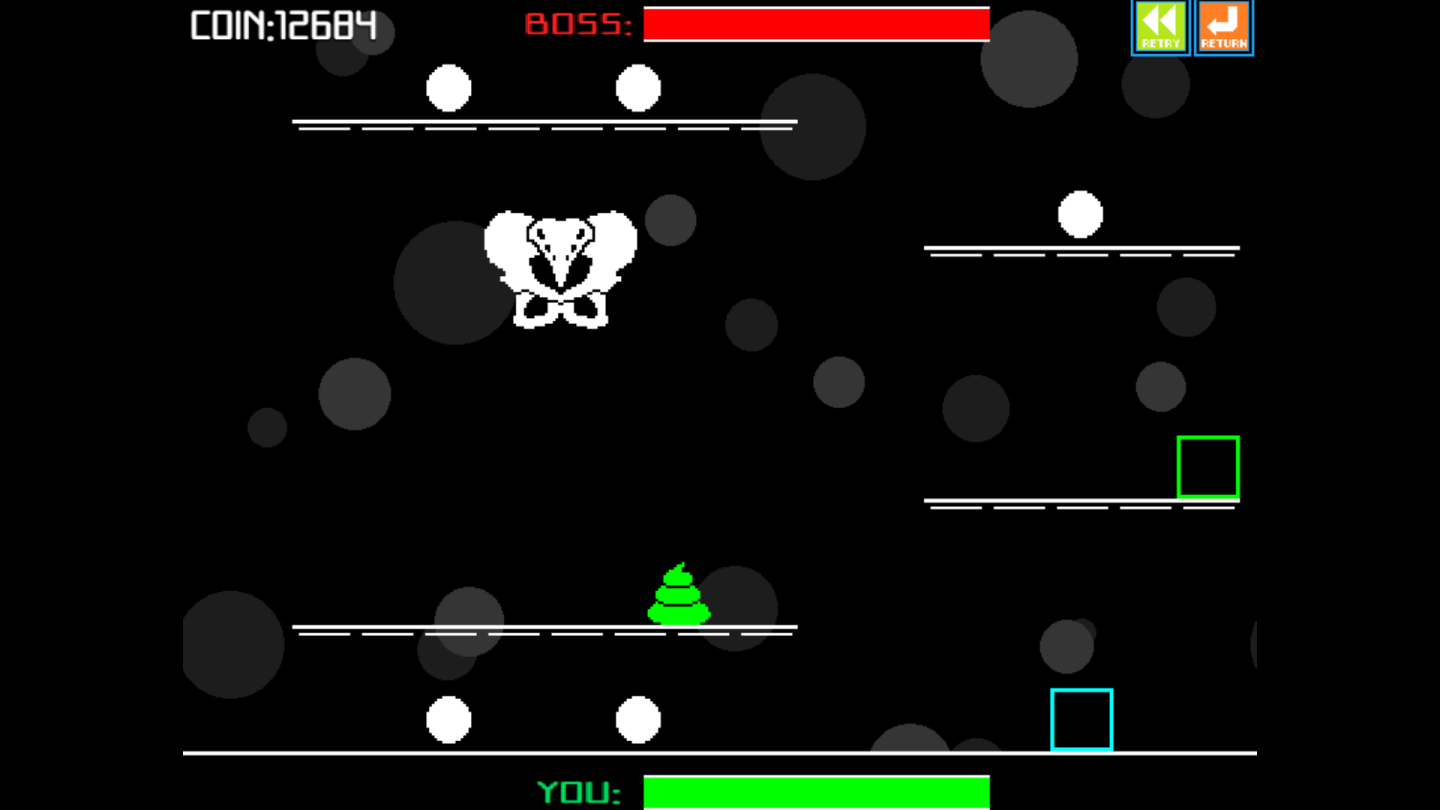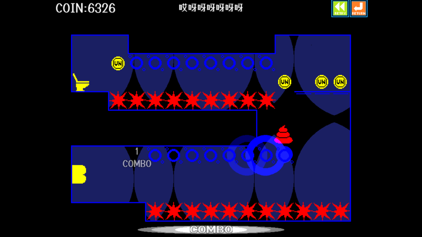 「這個遊戲中,完全沒有感人至深的故事,也沒有震撼人心的魅力角色等要素。」《糞勇前進》是在霓虹燈裝飾的世界中,透過跳躍將自動前進的「糞便」引導到目標馬桶的高難度 2D 動作遊戲。
