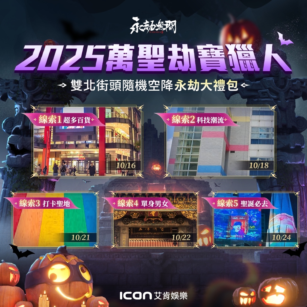 整座城市都是我的藏寶圖!《永劫無間》「2025 萬聖劫寶獵人」活動即將展開,玩家將化身「劫寶獵人」於雙北街頭尋找隱藏寶藏。此活動去年首次推出即獲熱烈迴響,今年將再度升級回歸,獎勵更豐富、挑戰更刺激。