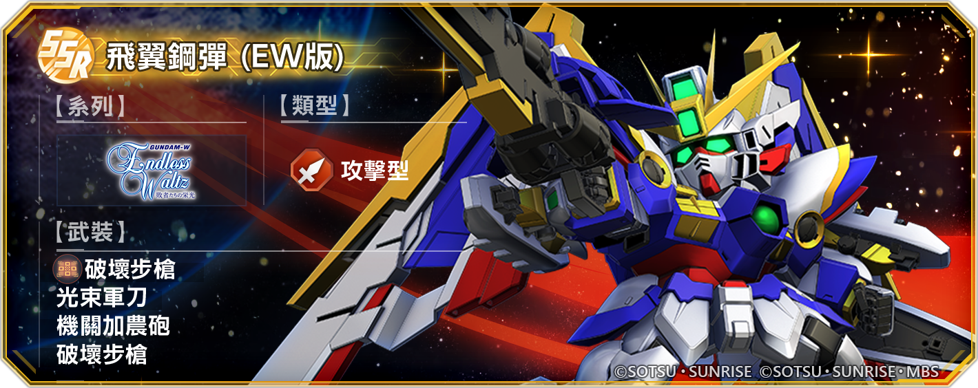 為慶祝《新機動戰記鋼彈W》30 週年,遊戲中已於 10 月 16 日起推出登入獎勵與板塊使命!可由登入獎勵獲得 SSR「飛翼鋼彈(EW版)」、板塊使命中則可獲得 SSR「希洛.唯」以及「飛翼鋼彈(EW 版)突破界限材料 SSR」等豐富獎勵,千萬別錯過!