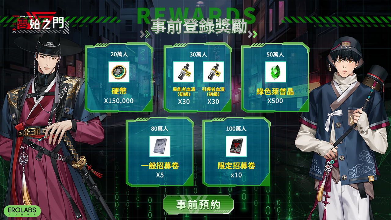 即日起至 2025 年 10 月 29 日為止,於 EROLABS 官網登記領取封測資格後,即可馬上體驗《零始之門》帶來的魅力。EROLABS 黃金會員以上用戶可獲得額外封測資格!封測結束後,所有帳號遊戲資料將進行完整刪除。