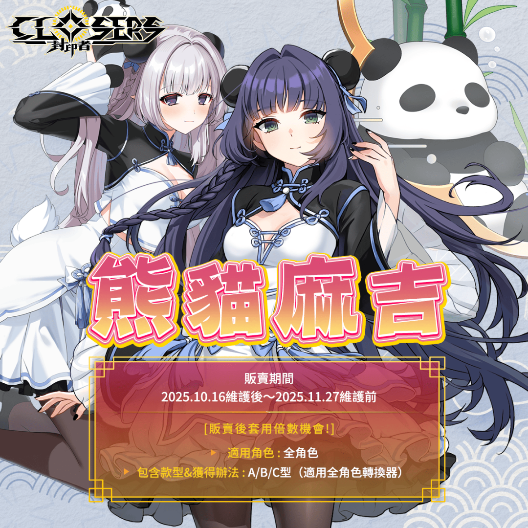 在挑戰極限方面,遊戲追加了全新高難度團體副本「D伯爵HARD:人類神的夢幻劇」。此更新開放了夢幻君主「阿特波羅斯模組」升級製作為史詩級模組「D伯爵喝采」的途徑。此外,玩家還可以製作全新強力連身時裝「人類神 D/莫爾塔小姐稀有組合時裝」。官方也提醒,現階段登入即可領取系列內容紀念獎勵。伴隨秋季活動同步推出的還有全新時裝「熊貓麻吉」,以可愛俏皮的熊貓造型為設計靈感,讓角色們化身「熊貓軍團」的一員,增添戰場萌力。