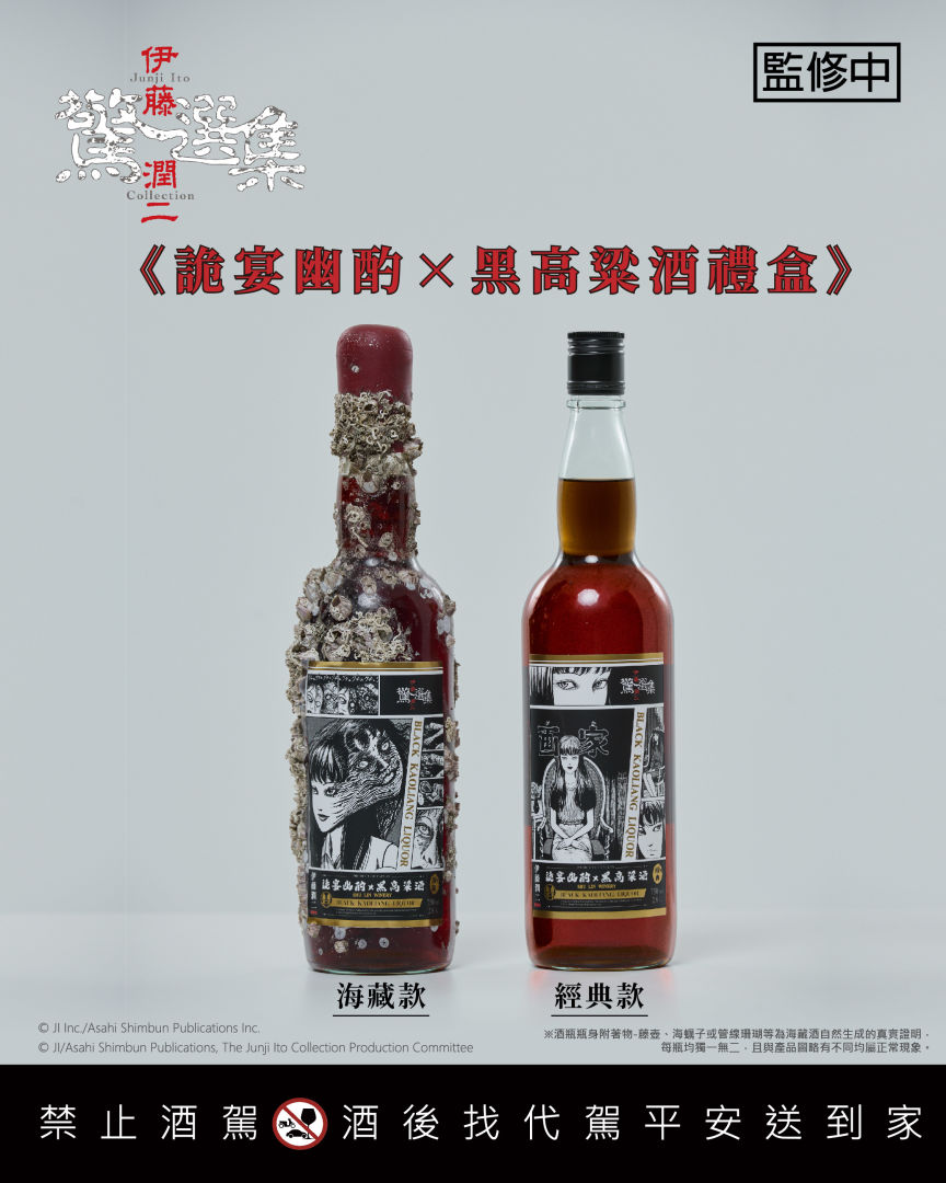 想像一下,點起富江香氛蠟燭,微光搖曳間散發邪魅的氣息;擺上流沙杯墊,倒一杯來自深海百日沉淵的海藏酒,再配上蛞蝓少女口金包的時尚點綴——完美打造暗黑燭光晚餐。這樣的收藏組合,既浪漫又危險,讓人美到心慌,一眼就淪陷。今年以「百日沉淵」為主題,把恐怖美學推向新高度。從限量海藏酒到精品周邊,粉絲們千萬別錯過這場專屬於伊藤潤二的暗黑體驗!