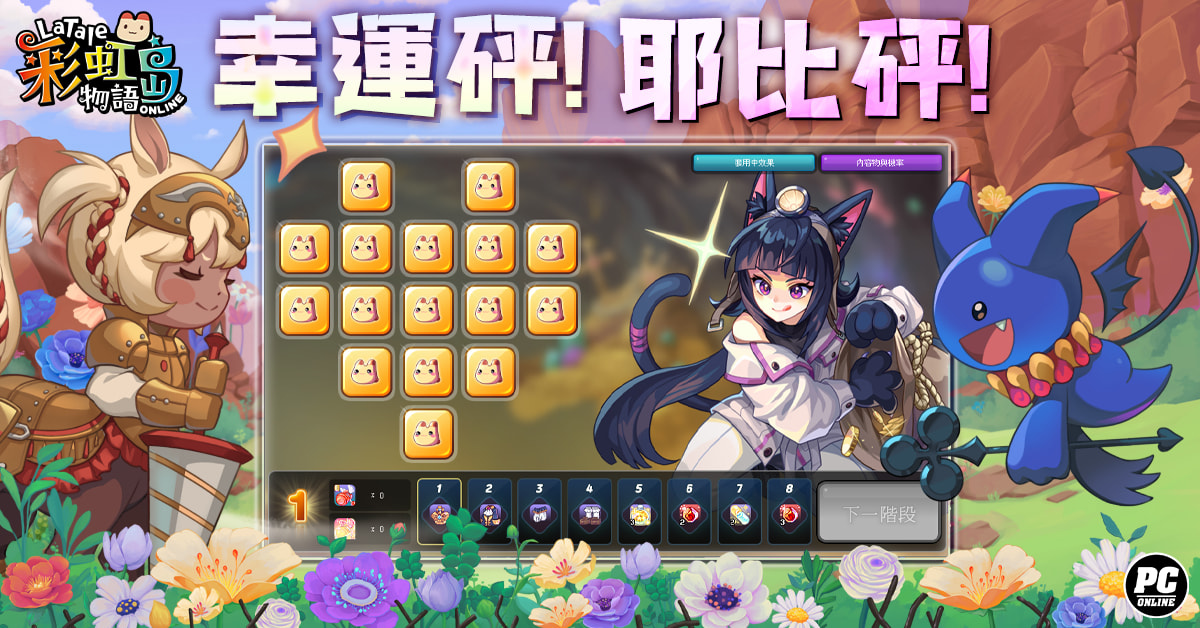 全新類型的尋寶活動「幸運砰!耶比砰!」限時登場!活動中不僅可以獲得多樣助力道具,玩家在每個階段中只要獲得特定關鍵道具,即可選擇進入下一階段,並可獲得能維持至活動結束的經驗值、道具掉落率、最大傷害⋯⋯等各種能力值加成!考驗你的幸運值,千萬別錯過讓自己戰力升級的機會!