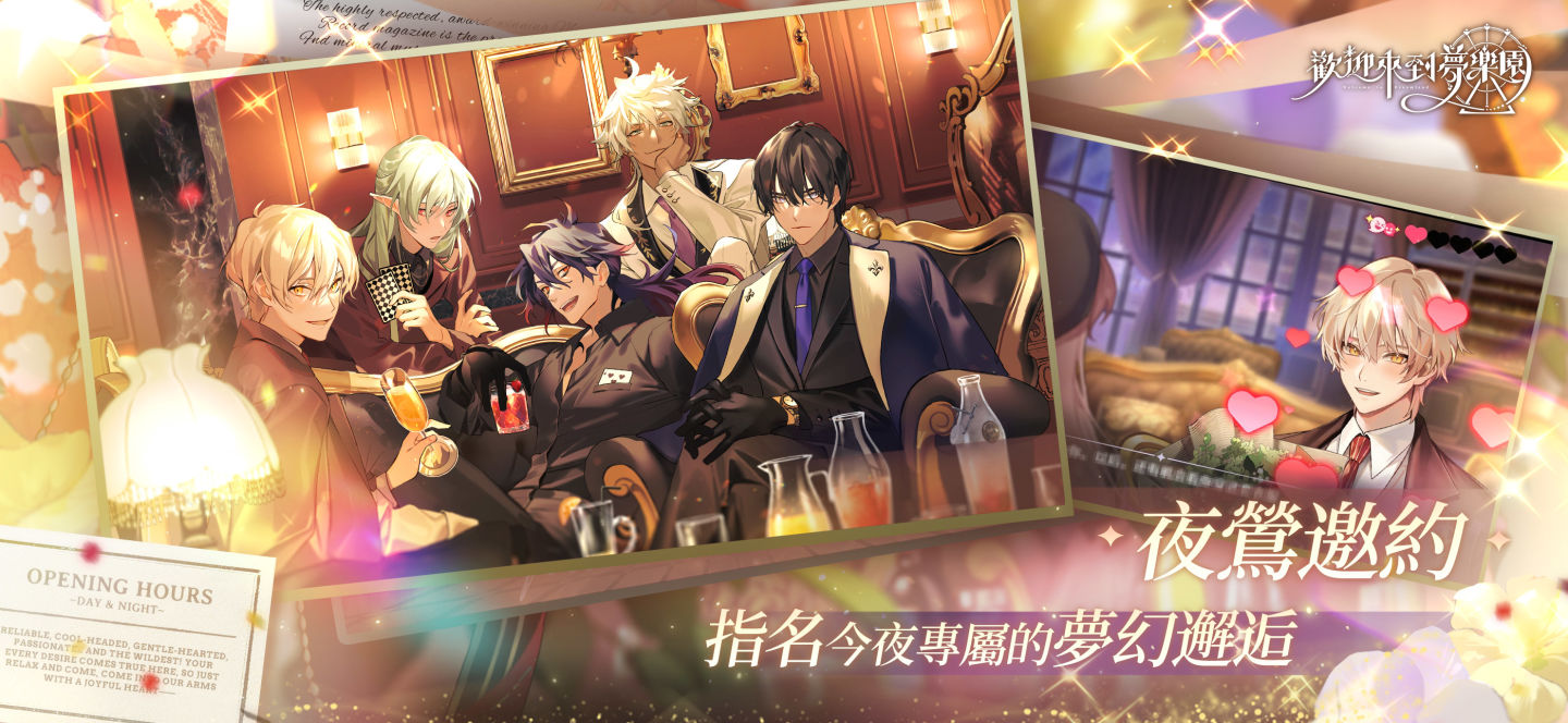 霓虹燈閃耀間——夜鶯的招牌悄然亮起,甜蜜的糖果香氣湧上鼻尖,空中綻放著煙花美麗的輪廓。歡迎來到夢樂園!在這裡,夢幻與魔法永不落幕。