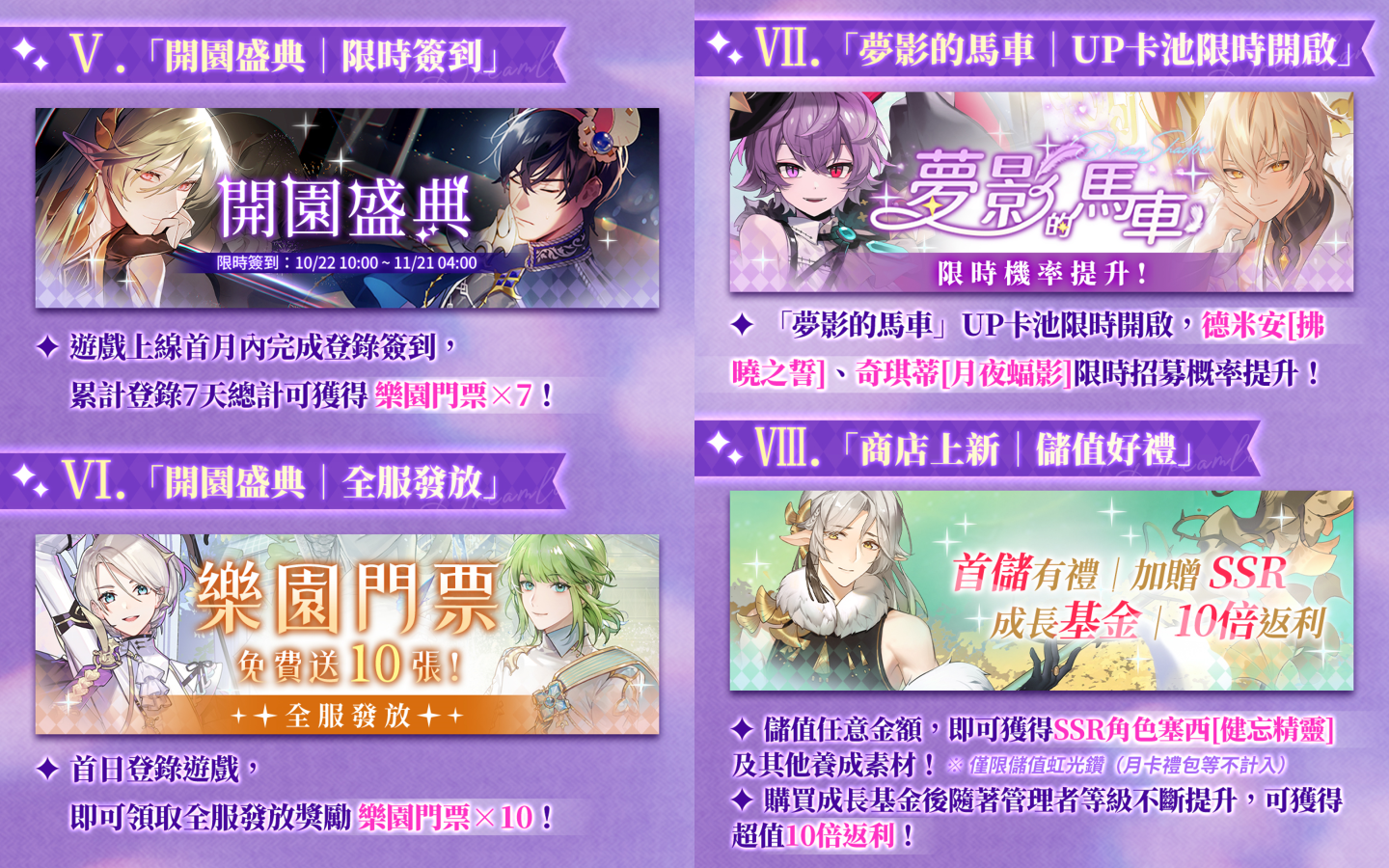 ▪️「首日登錄遊戲」即可領取獎勵樂園門票×10,「上線首月內完成登錄簽到」,累計登入 7 天還可共獲得樂園門票×7!