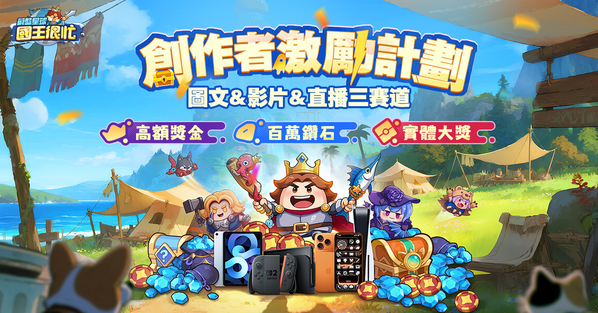 《蔚藍星球:國王很忙》於今日宣布,邀請台灣知名創作者「大蛇丸」擔任遊戲代言人,並同步釋出精彩有趣的代言人宣傳花絮影片。