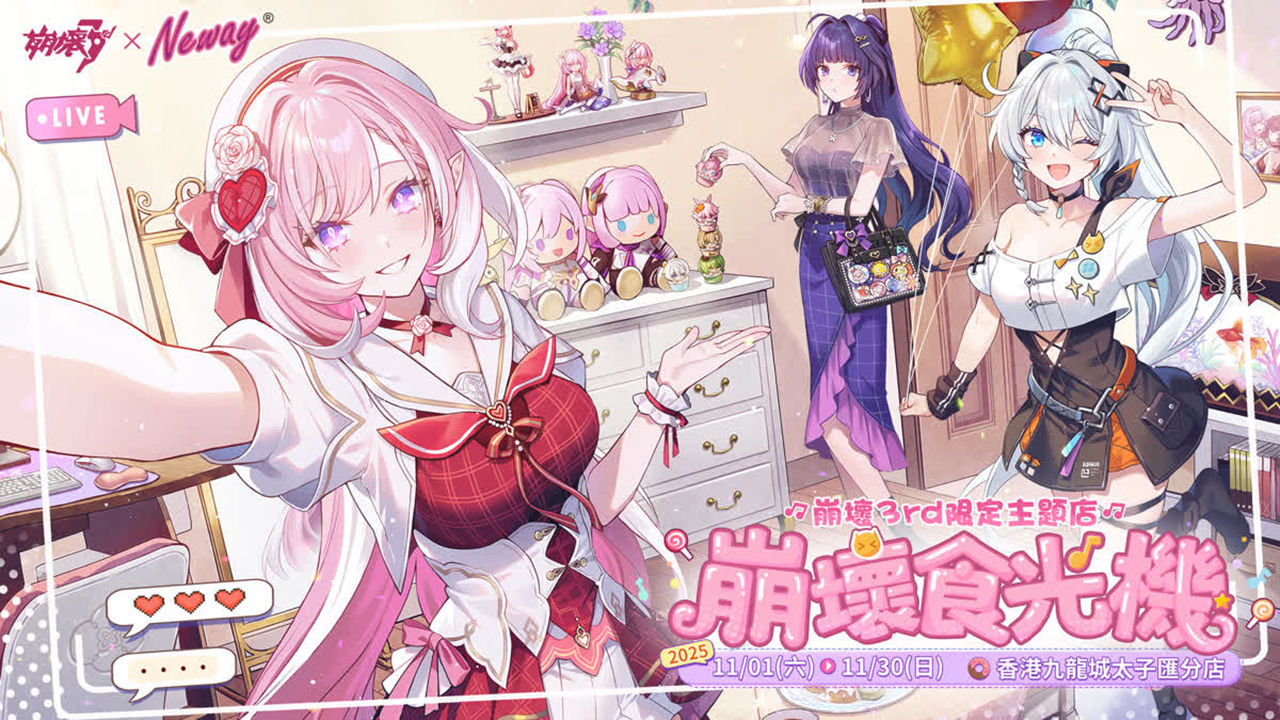 隨著主題聯名店在台灣熱烈展開,香港艦長們也將迎來專屬的「崩壞食光機」主題店!《崩壞3rd》×Neway Café 聯名主題餐廳將於 11 月 1 日(六)起於九龍城太子道西正式開幕,活動將持續至 11 月 30 日(日)。