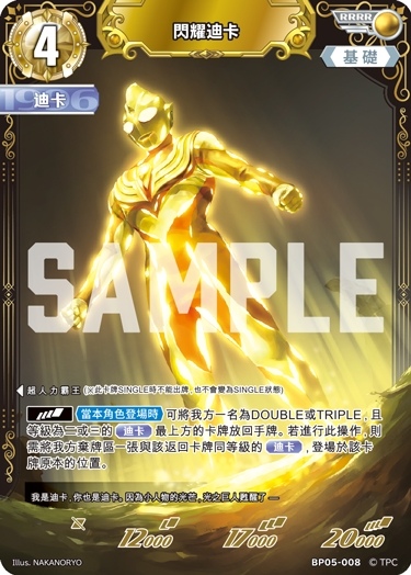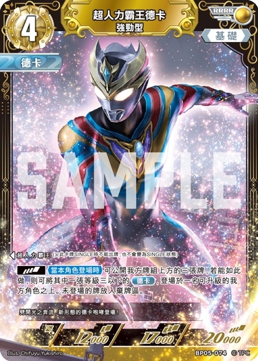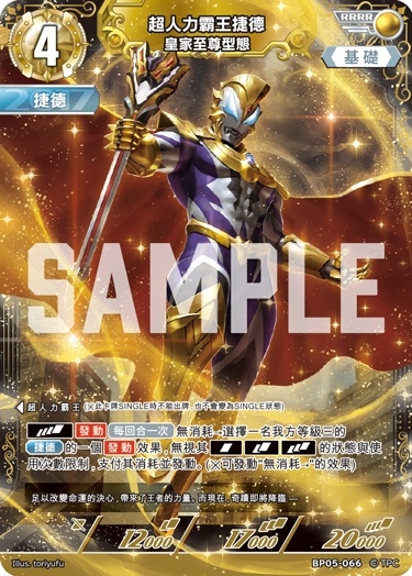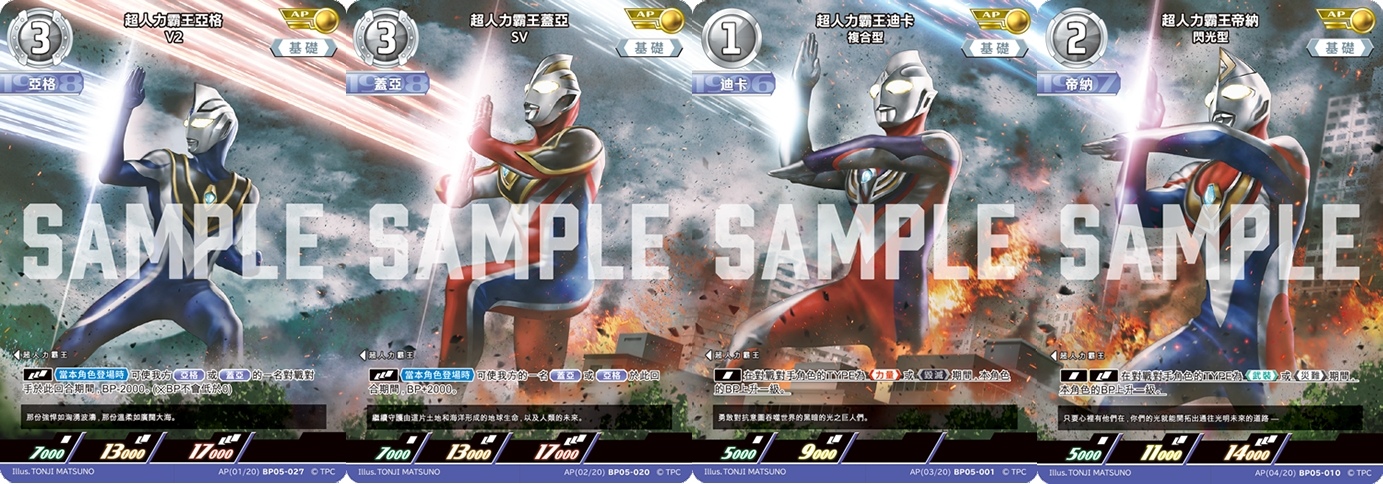 本次依舊收錄了多樣精美的異圖卡片,可以看到由 4 張卡牌所拼成的平成三傑超人力霸王的超經典場面。作為《超人力霸王卡牌遊戲》一週年紀念禮遇,凡購買 BP05 盒裝商品,將可獲得一張特別插畫特典卡。