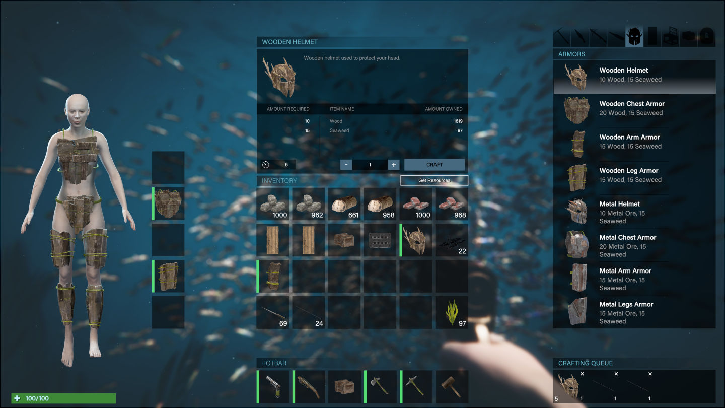 .進階製作系統:豐富的製作機制不僅能建造基地,還可打造各種原始與高科技武器與工具。從礦石、金屬、貝殼等材料中提煉,製作出近戰與遠程裝備,如「水壓炮(Hydro Cannon)」、「水壓精準步槍(Hydro Precision Rifle)」、「黑曜石匕首」與「弩」等。