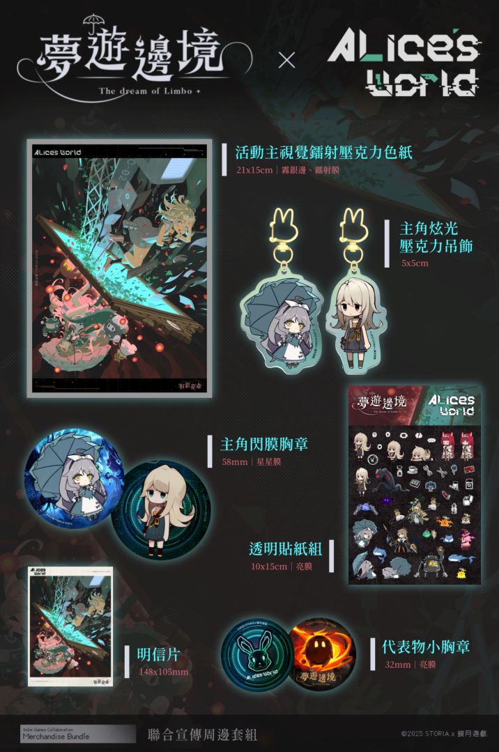 台灣獨立遊戲團隊鏡月遊戲與 STORIA Games 聯合推廣旗下兩款風格迥異的作品:《夢遊邊境》與《Alice's World》。為紀念這次短暫的跨度相遇,官方特別邀請了繪製《物語》系列而聞名的知名插畫家 Vofan 繪製了聯合宣傳主視覺,並同步推出限量紀念周邊商品。