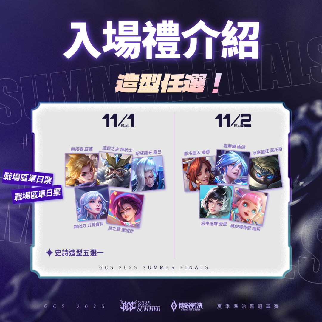 《Garena 傳說對決》GCS 2025 夏季總決賽將於 11 月 1 日(六)至 11 月 2 日(日)在臺北和平籃球館盛大登場。