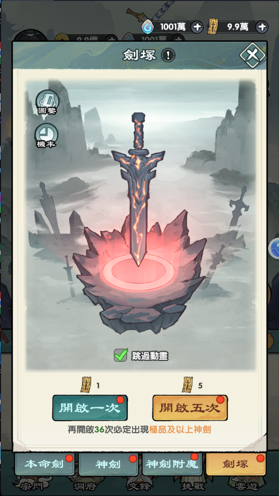 .本命劍:可升級、升階,提升攻防屬性,是修仙者的忠實夥伴。