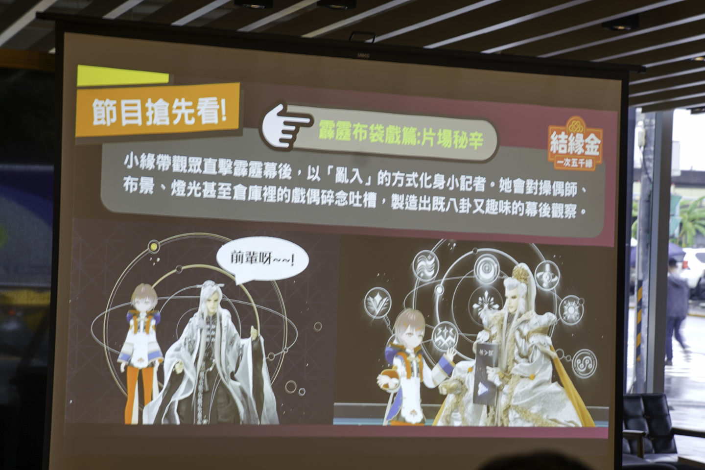 橘子集團攜手霹靂國際多媒體打造實境互動節目「結緣金」 將於 11 月 1 日開播上線,在今日的映前座談會上,雙方分享了技術佈局與願景外,擔任節目主持的靈魂人物「宮祈緣」(小緣) 親臨現場,以其「超會嘴砲的中二宮廟少女」人設,搭配以人工智慧學習的角色塑造與媒體交流,展現「無中之人」的特色趣味性。