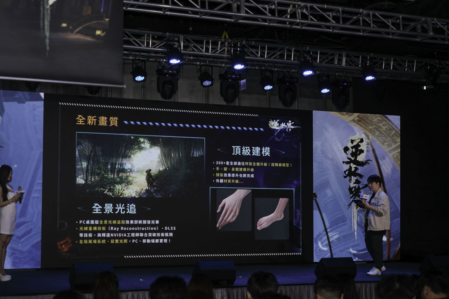 藉由整體重構《逆水寒》宣布正式進入全局光線追蹤(Ray Tracing)時代,系統策劃忘汐現場展示實機效果,透過不同裝置呈現升級前後的畫面對比。團隊與輝達 NVIDIA 工程師聯手突破光線重構(Ray Reconstruction)與 DLSS 技術瓶頸,繁體版即將導入 4K 畫質升級與寫實光照技術,帶來主機級的沉浸視覺體驗。