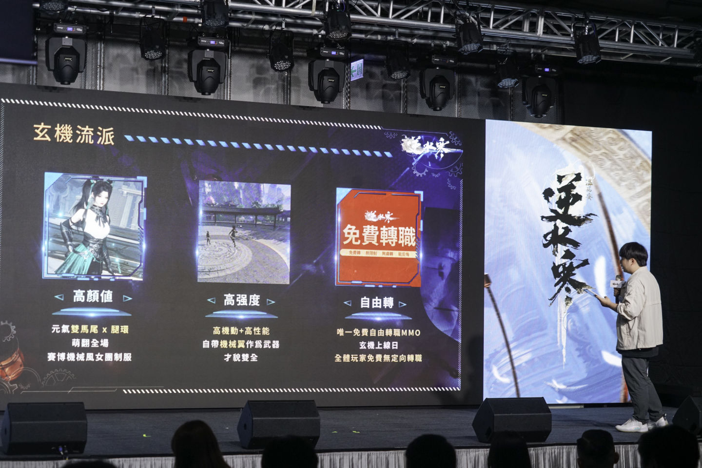 開放世界 MMORPG《逆水寒》今(29)日於台北三創生活園區盛大舉辦一週年版本玩家見面會,搶先爆料 2.0 新賽年重磅改版內容。由開發團隊代表策劃系統忘汐登台,宣布了即將進行的 2.0 版本內容涵蓋畫質重製、新流派「玄機」推出、大規模玩家儲值返還計畫,以及與《新世紀福音戰士》、《尼爾》系列等作品的聯動。