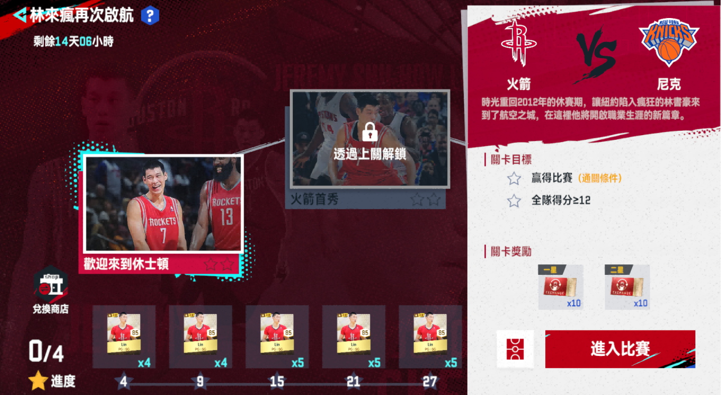 全新「林來瘋」專屬挑戰關卡正式登場,邀請玩家重溫林書豪掀起籃球旋風的經典時刻。完成關卡還可獲得大量林書豪收藏卡,為你的陣容注入熱血靈魂!