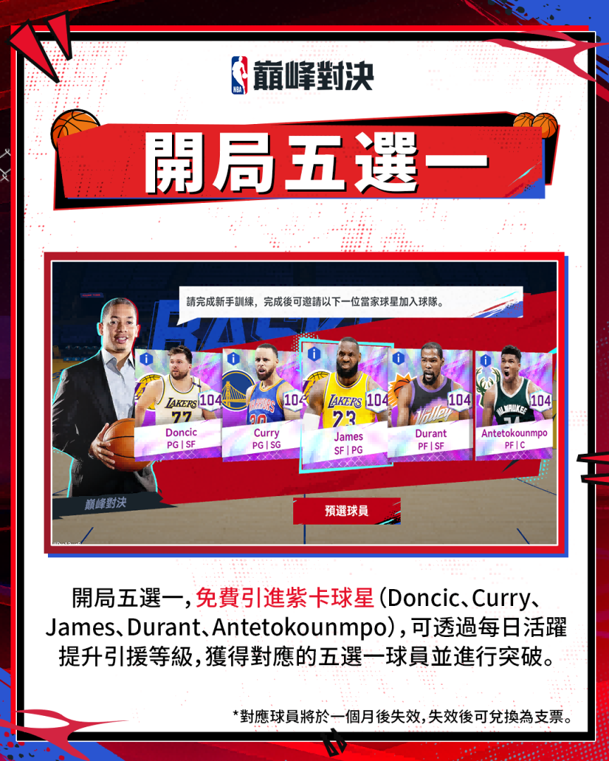 選擇你的第一位球星,打造專屬於你的 NBA 傳奇戰隊!