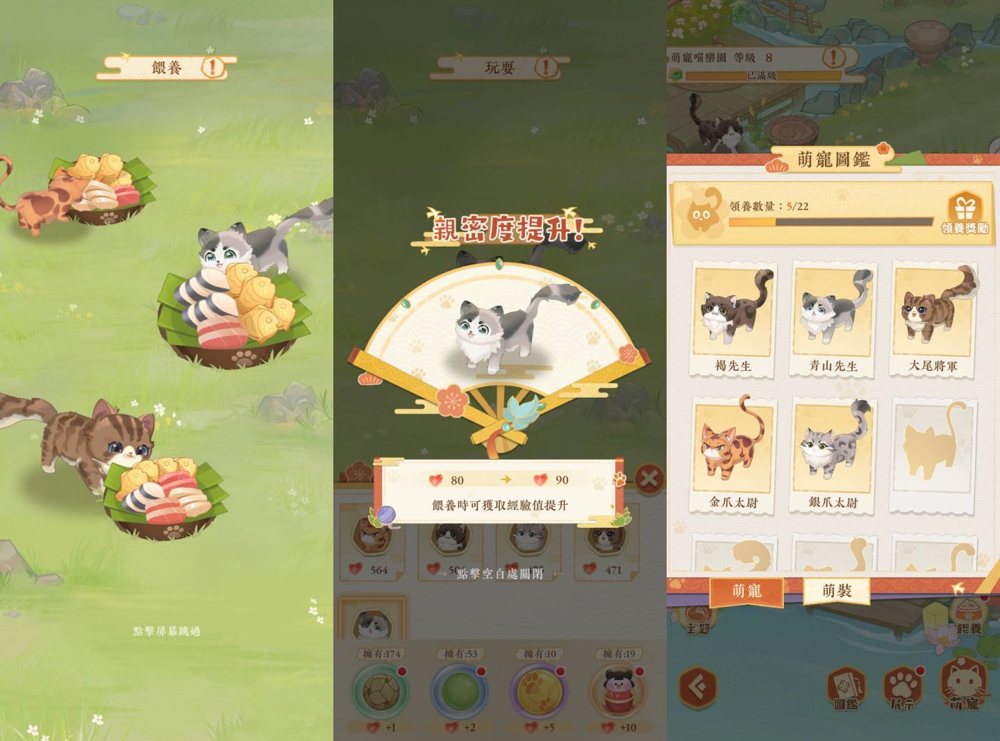 擼貓是非常治癒的活動,玩家不只可以與貓咪互動,還能佈置貓屋,收集各種貓咪、玩具和貓屋造型,佈置出溫馨且毛茸茸的貓咪群居小屋,貓咪的養成還能提供額外的經營 BUFF。