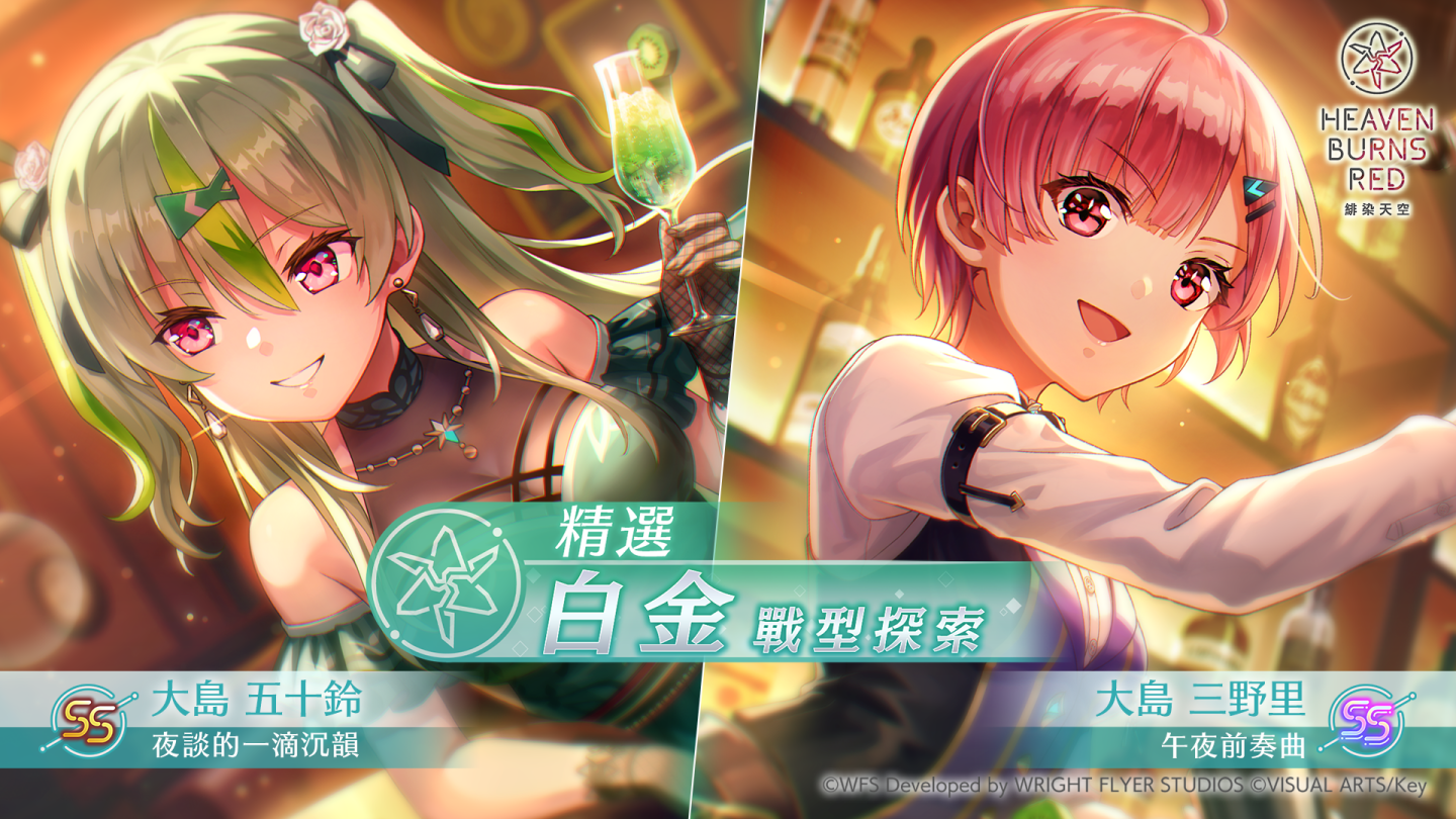 本次精選白金戰型探索將精選出新戰型的 SS<靈魂共振>【午夜前奏曲】大島三野里、SS【夜談的一滴沉韻】大島五十鈴,出現機率上升!