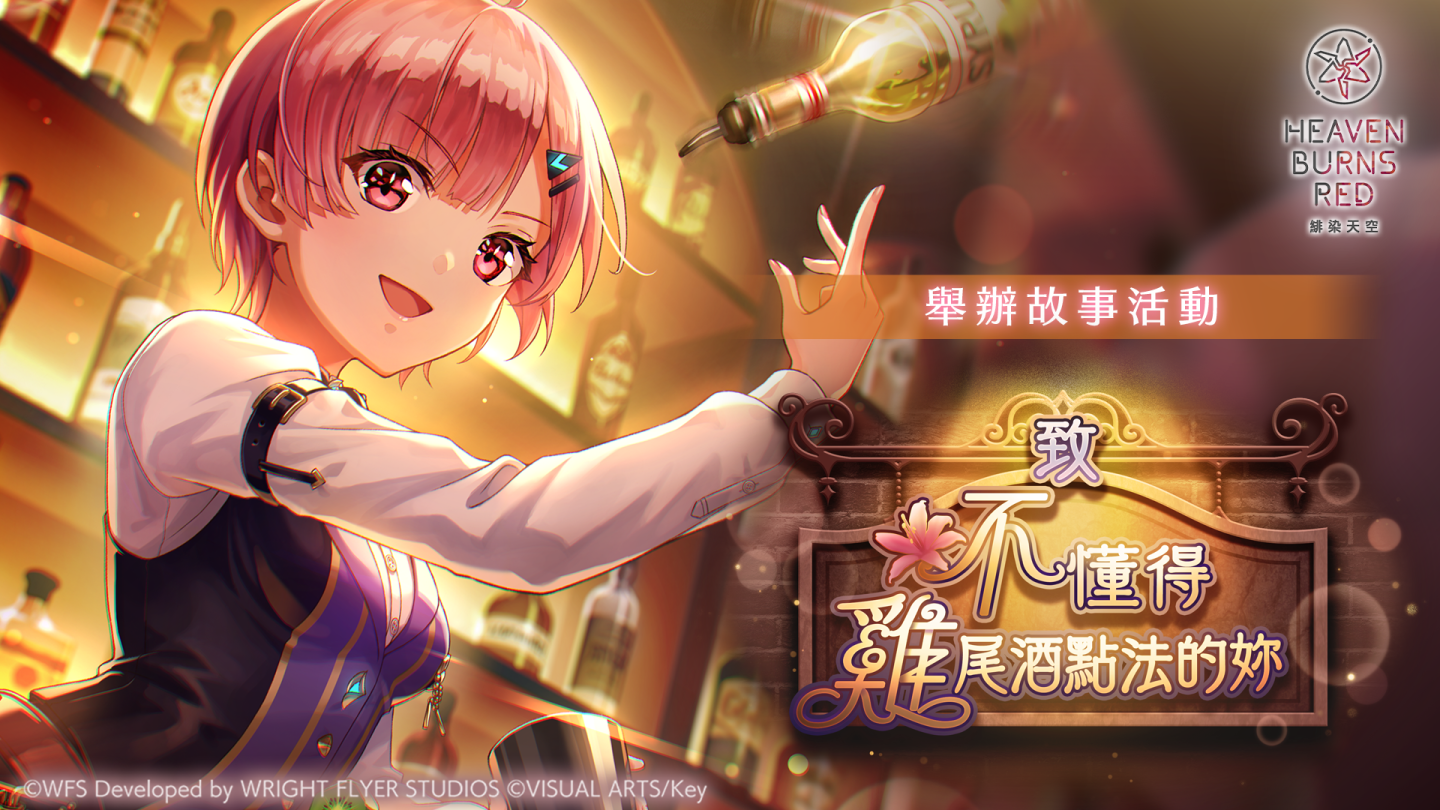 Wright Flyer Studios×Key《緋染天空 Heaven Burns Red》於 2025 年 10 月 31 日(五)起,舉辦大島三野里會有活躍表現的故事活動「致不懂得雞尾酒點法的妳」。