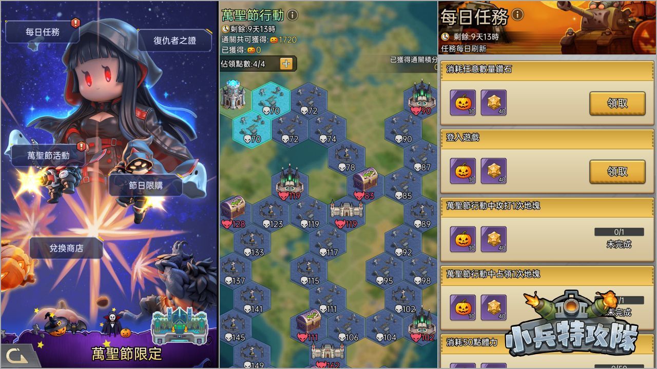 軍武塔防手遊《小兵特攻隊》於今年萬聖節特別推出全新大型活動「萬聖節行動」,活動自 10 月 31 日起限時開放,帶來全新地圖佔領玩法與南瓜幣兌換機制,更有「傳奇復仇者」兵種同步登場,邀請各位指揮官挑戰戰略極限、掃蕩敵方據點,搶占戰場主導權!