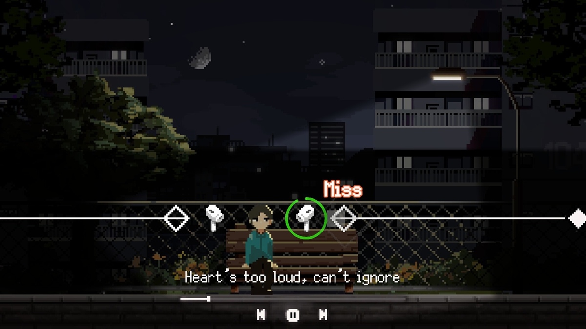 至於在遊戲玩法方面,本作節奏遊戲及其操作方式非常標準(ESC、空白鍵、Enter、方向鍵)。不過,在方向輸入與移動方面,官方建議玩家將雙手食指分別放在F鍵與J鍵上,如此一來就能讓手與耳朵的方向感達成一致。同時,本作還收錄以搭載「抗噪」功能的無線耳機為主題的青春日常劇,玩家可戴上無線耳機,體驗宛如真實使用「抗噪」等功能的沉浸式音效。