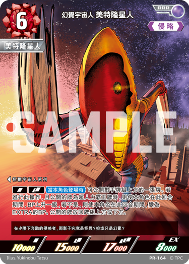 第五彈強化包「BP05 黎明的光輝」首次導入全新稀有度「RRRR(四重稀有)」,以細膩加工手法,展現超人力霸王閃耀迪卡,以及光輝傑洛的嶄新姿態,極具收藏價值。每盒 24 入的盒裝特典卡,特別邀請《膽大黨》漫畫作者龍幸伸親繪「幻覺宇宙人 美特隆星人」,收藏及遊玩性兼具,為玩家帶來嶄新的卡牌遊戲體驗。