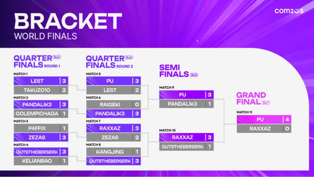 在八強賽中,他面對前年度世界冠軍「LEST」在陷入落後的情況下上演驚人逆轉,以讓二追三成功晉級,氣勢如虹。隨後於四強賽擊敗強敵 「PANDALIK3」,強勢挺進冠軍戰迎戰歐洲霸主「RAXXAZ」。
