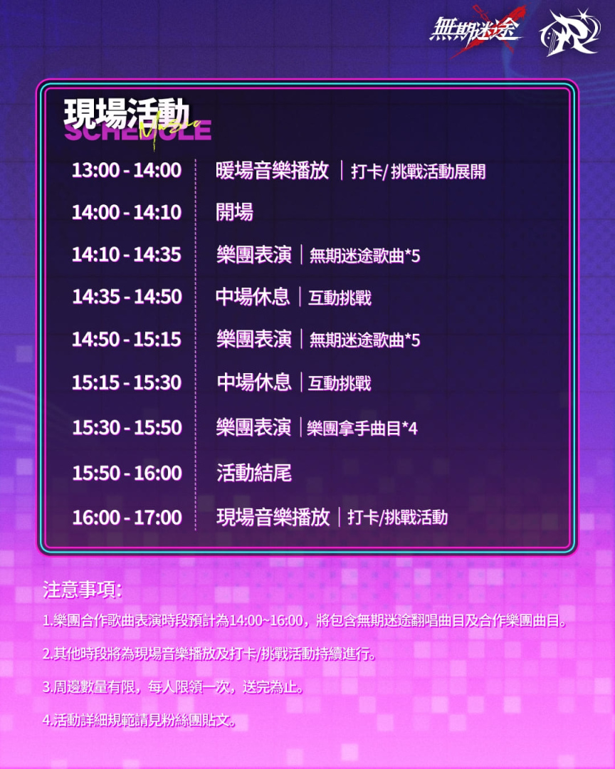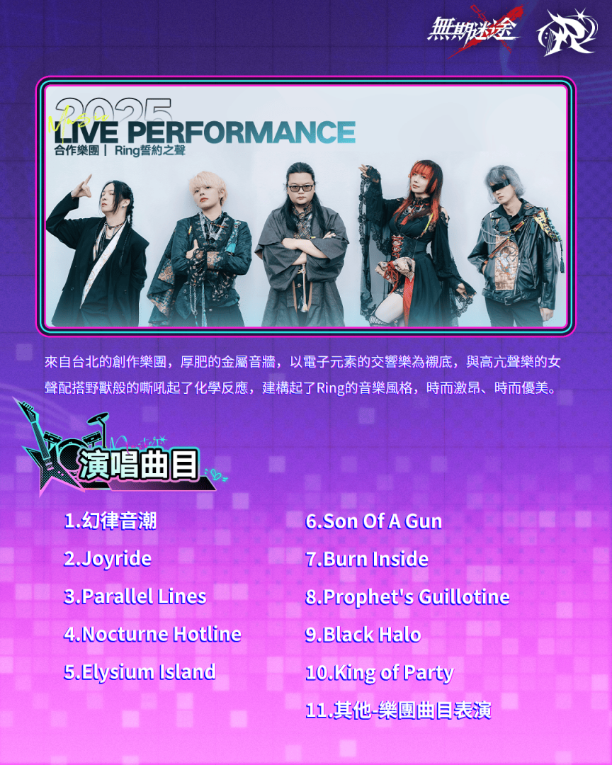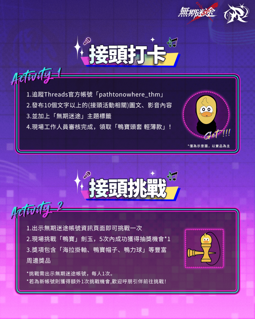 「上街頭一起接上鴨頭吧!」線下音樂派對即將展開,本次邀請合作樂團「Ring 誓約之聲」演唱 10 首《無期迷途》經典曲目,熱烈邀請局長們親臨現場,享受音樂饗宴,並打卡領到限定鴨寶頭套~輕薄款!