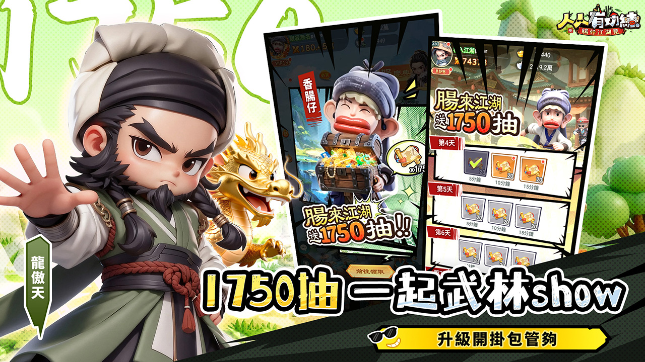 無厘頭武俠放置卡牌 RPG《人人有功練:腸仔江湖見》今日正式於雙平台上線!一系列開服活動及「大師兄」黃一飛出演的主題曲完整版影片活動也同步開啟,下載即送 1,750 抽,快來和衆多經典武林大神一起開啟躺著練功的江湖旅程!