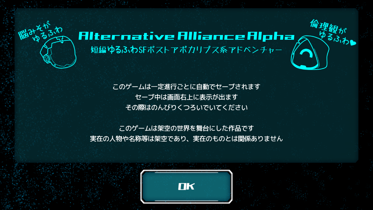 《Alternative Alliance Alpha》為一款以末日後世界作為舞台的 SF 科幻風短篇冒險遊戲。在遊戲中,將以空中出現巨大空洞的遙遠未來世界作為舞台,由空洞內吹出的荒蕪沙嵐風暴,阻礙了世界的通訊,並將整個殖民地完全孤立起來。更有甚者,還有被稱為「混成獸」的異形怪物在殖民地外遊蕩,對人類生存造成巨大威脅。