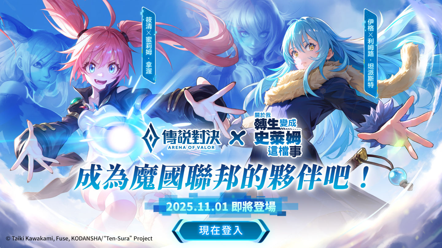 《Garena 傳說對決》宣布將首度與超人氣異世界動畫《關於我轉生變成史萊姆那檔事》展開聯動合作,活動已經正式開啟。