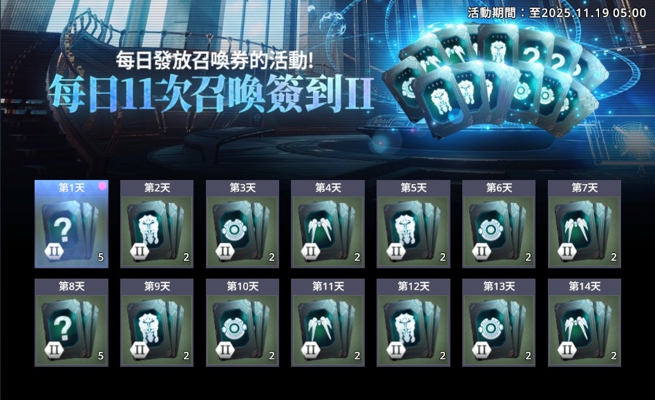 為紀念本次更新,遊戲內同步推出多項豐富活動!首先,至本月 19 日為止將舉辦「每日 11 次召喚簽到」活動,只要登入遊戲,即可每日入手包含守護者、機甲、坐騎等多種「11 次召喚券」。