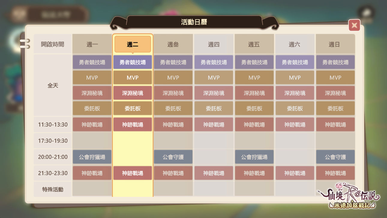同時,遊戲內也準備好了專屬於冒險者們的挑戰日曆!只要跟隨日曆中的活動指引,就不會在廣大無邊的米德加爾特大陸之中尋找不到方向!同時要提醒大家,完成全天的每日活動之後,別忘了去神蹟戰場參與緊張刺激的 Boss 戰役!不僅可以挑戰自我,更可以努力成為排行榜上領先者,獲取意想不到的精美禮物唷!