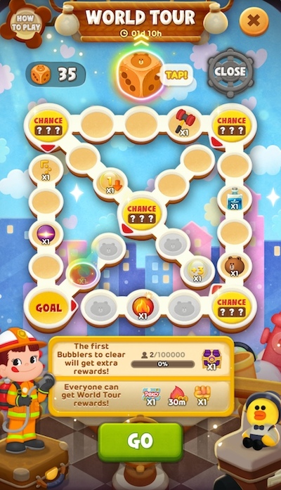 在活動期間內,只要通過一般新關卡,即可獲得擲骰子的機會。在世界之旅活動頁面中擲骰子前進並完成環遊世界一周,即可獲得活動獎勵,完成還能獲得搶先過關獎勵喔。
