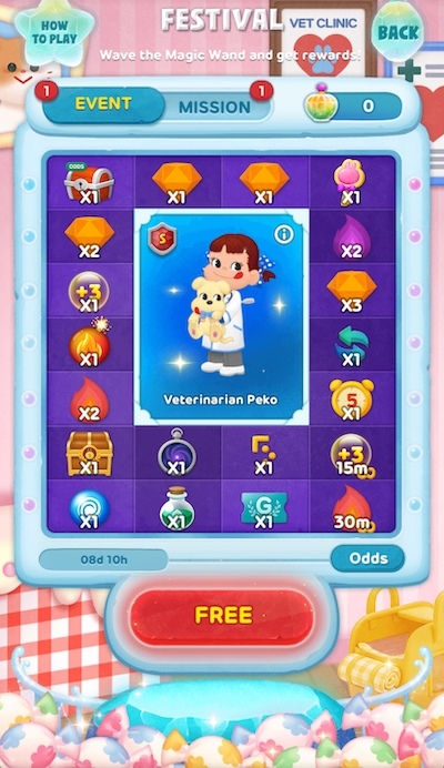 在活動期間內達成指定任務,即可獲得魔法粉末。利用魔法粉末來揮動魔法杖,就可以從活動頁面上隨機獲得限定寵物「Veterinarian Peko」或遊戲內的獎勵道具喔!