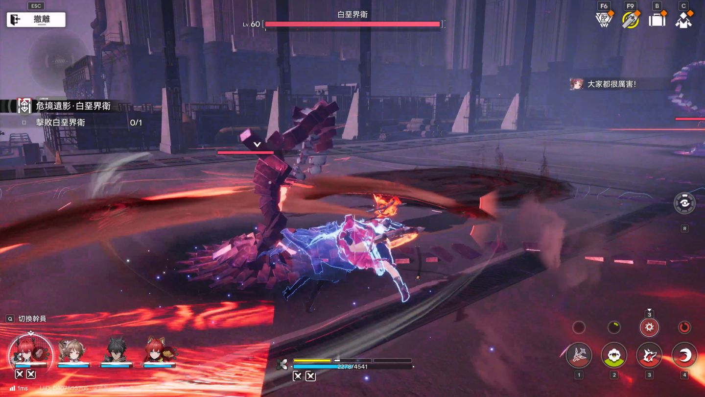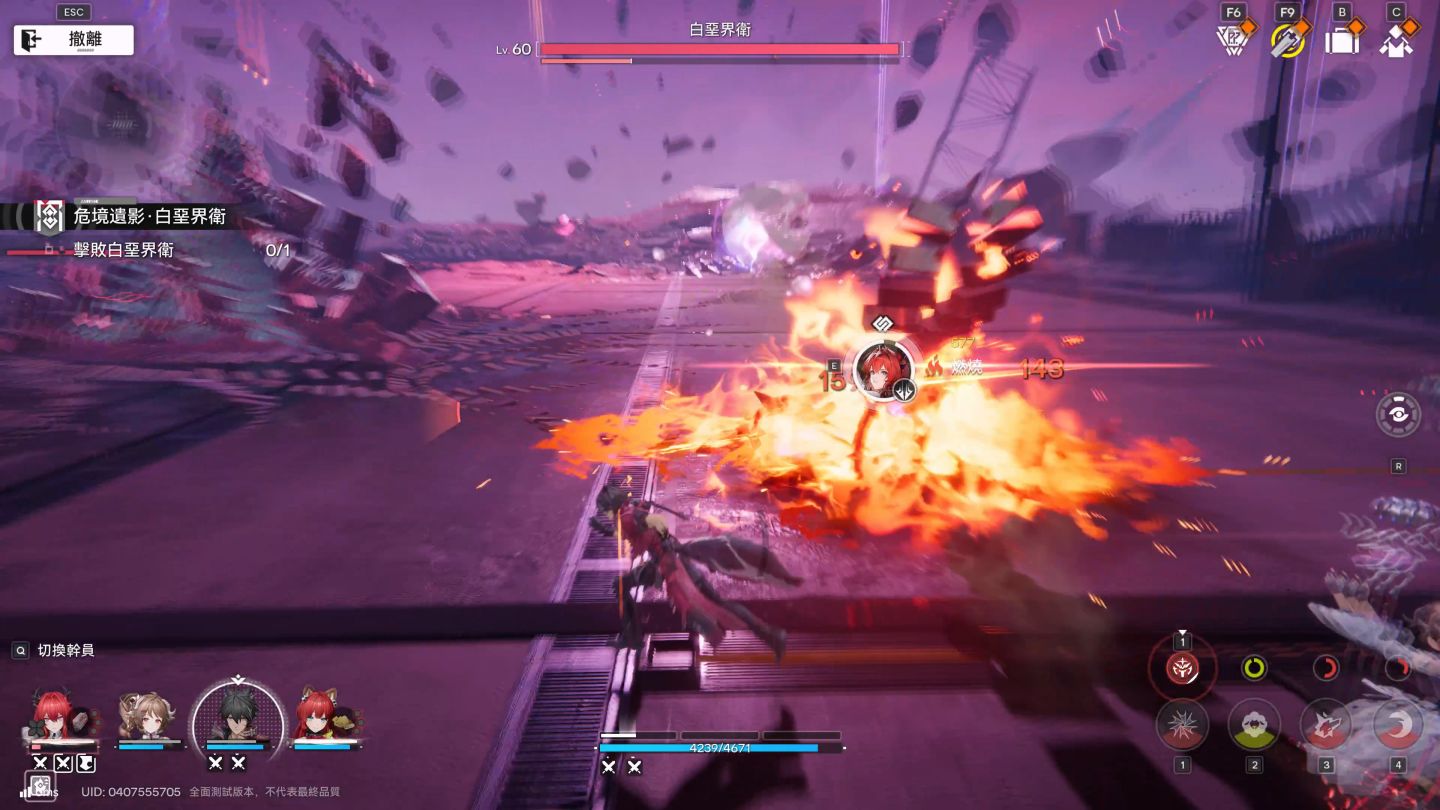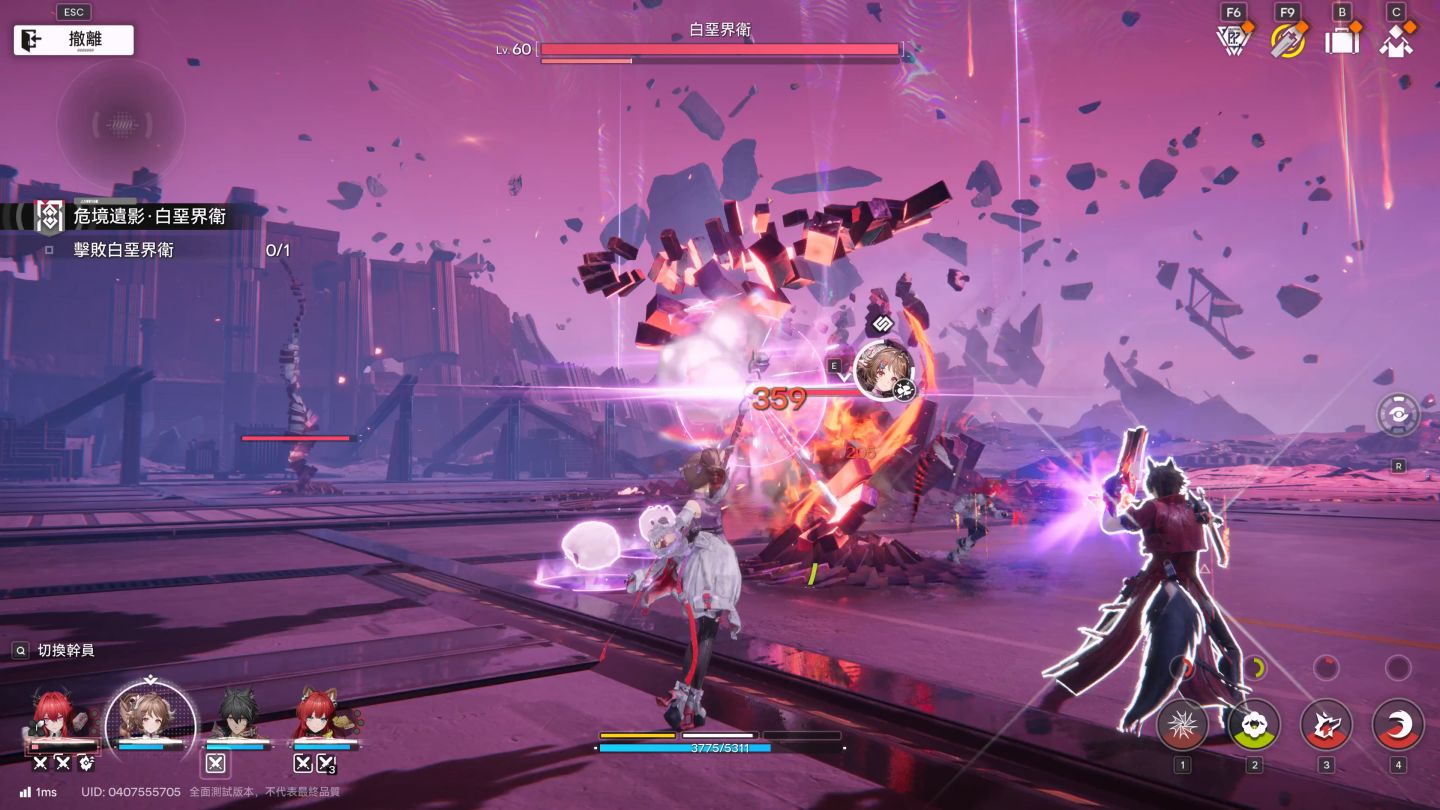 先說戰鬥體驗,在先前的測試中,編輯還停留在戰鬥需要指向特定目標的操作,雖然是四人同框戰鬥的雛形,但是閃避回饋感相對模糊許多。這次的改動下,角色可以二度迴避的可視化表現,以及角色重擊、連攜技、絕招共三種特殊技能,搭配場上四人共鬥演出,玩家總共可以使用 12 種技能組件來「配置」出一場戰鬥所需的套路。