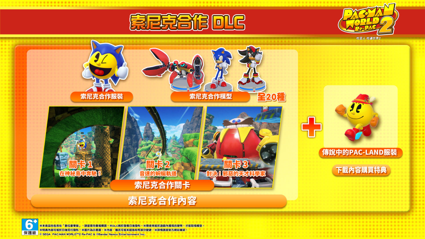 可以享受索尼克合作關卡及合作服裝等內容的《吃豆人 吃遍世界2》下載內容「音速小子」合作內容已於今日正式發布。此外「音速小子」合作內容亦已於今日開放單獨購買,喜愛的玩家千萬不可錯過。