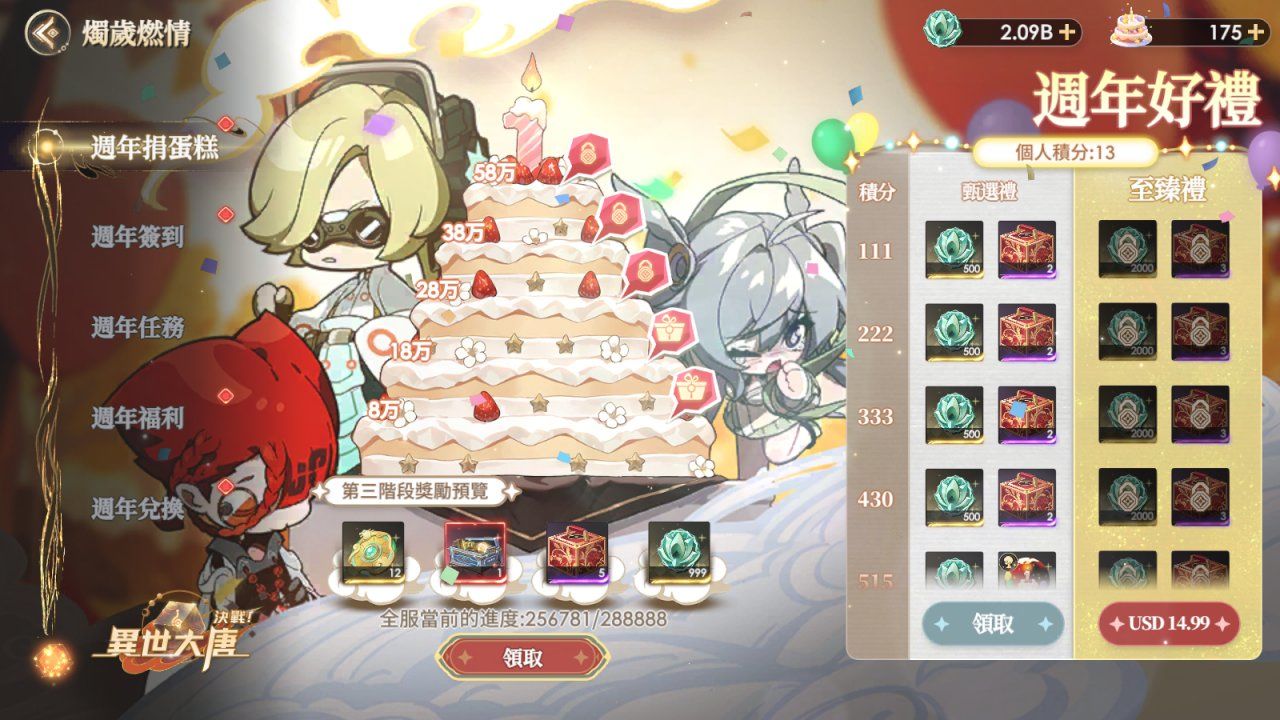 隨著《決戰!異世大唐》正式邁入一週年,全服歡慶的「燭歲燃情」限時活動同步展開!即日起玩家每日登入即可簽到領取獨家虛寶,活動中的「蛋糕」道具可透過完成指定任務取得,參與全服「蛋糕捐贈」互動,累積蛋糕數量即可解鎖豐富回饋,甚至獲得免費代金券!快號召好友們一同貢獻蛋糕、共享甜蜜勝利!