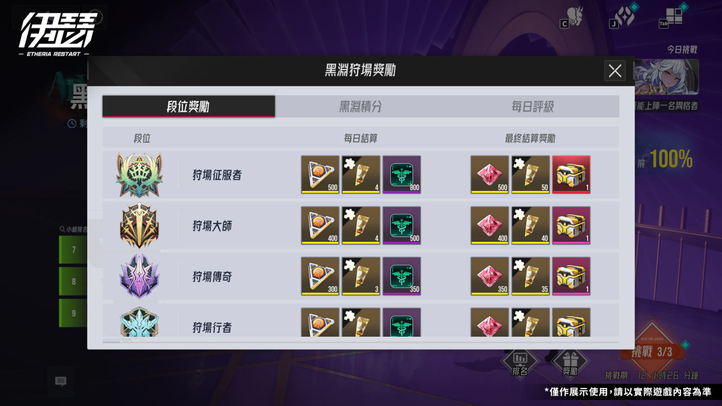 禁忌試驗室深處,誕生了足以撕裂黑牆的終極造物——全新的挑戰「黑淵狩場」即將展開!擊敗強敵、提升狩場等級,透過每日累積的狩場積分,爭取更高段位榮耀。脫穎而出的獵人將獲得豐厚獎勵,包括全新道具「改異骰子」、「極躍原型」等珍稀資源,與超鏈者一同角逐最強之名!