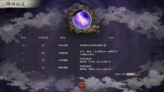 本作的新要素「寶珠」,具備獲得新指令與提升能力等多種效果,隨著玩家逐步解放「寶珠」,可以依照自己的喜好培育武將。「寶珠」的系統會依據身分而有所不同,當身分改變時,可解放的「寶珠」種類與可執行的內容也會隨之發生變化。透過解放「寶珠」,還能實現以往無法達成的行動,讓玩家在遊玩過程中體驗到不斷變化的樂趣。