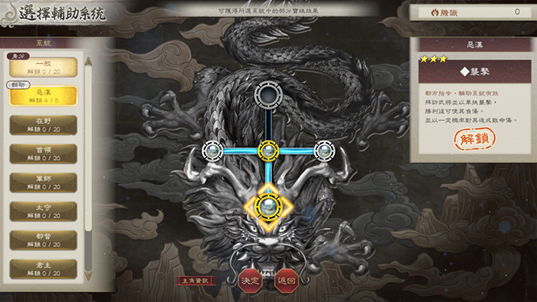 此外,軍師可透過「寶珠」獲得能讓已行動過的武將再次行動的「錦囊」,武將則能獲得在單挑中大幅提升勝率的「壓制」而惡漢則是能夠「襲擊」其他武將,透過這些豐富多變的「寶珠」系統,玩家能無限體驗專屬於自己的三國志世界。
