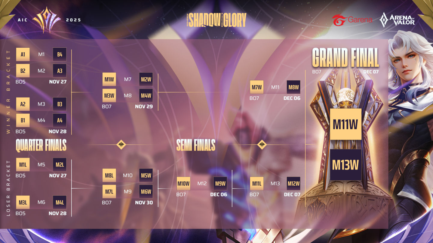最終四支隊伍將於 12 月 6 日與 7 日在越南河內舉行的線下四強賽與總決賽中登場,進行 BO7 對決,爭奪「AIC 2025 世界冠軍」頭銜與榮耀。