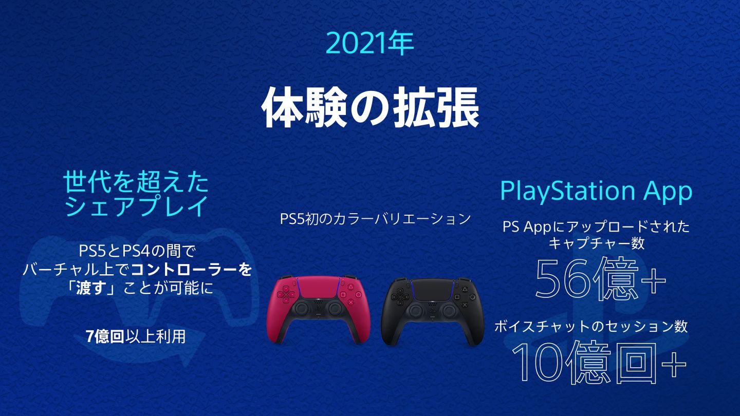 .自 2021 年起針對 PS Plus 會員推出,可與 PS4 玩家跨越時代一起遊玩的分享遊玩功能,截至目前為止累計使用次數超過 7 億次以上。