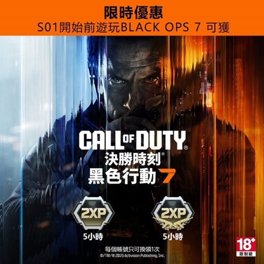 發行商 Activision 於 11/08 宣佈推出限時優惠,玩家只要在第一賽季開始前登入遊戲,即可獲得總計 10 小時的雙倍經驗值獎勵(5 小時的雙倍經驗值代幣及 5 小時的雙倍武器經驗值代幣).