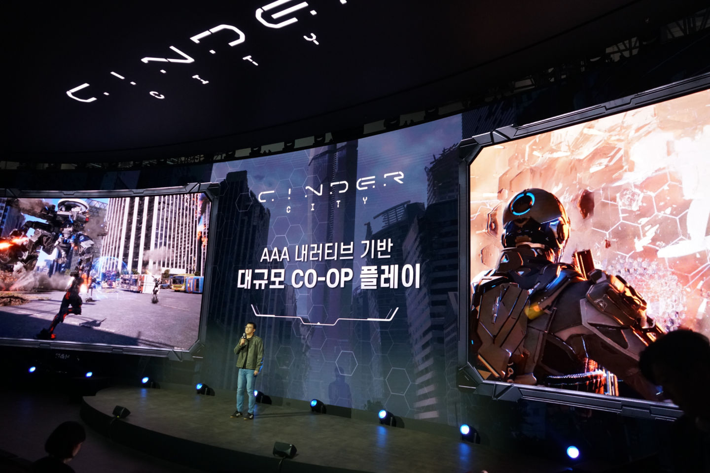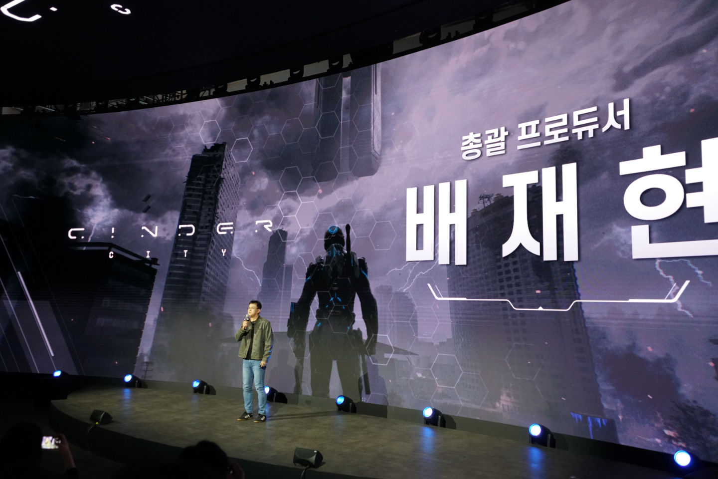 《Cinder City》(餘燼重生之都)由開發總負責人裴宰賢介紹,這是款以末日後廢墟化的「超級城市首爾」為背景的開放世界戰術射擊遊戲。其核心玩法強調「共同遊玩的射擊遊戲」,將以 PvE 內容為基礎,在此之上構築 PvP 競爭。