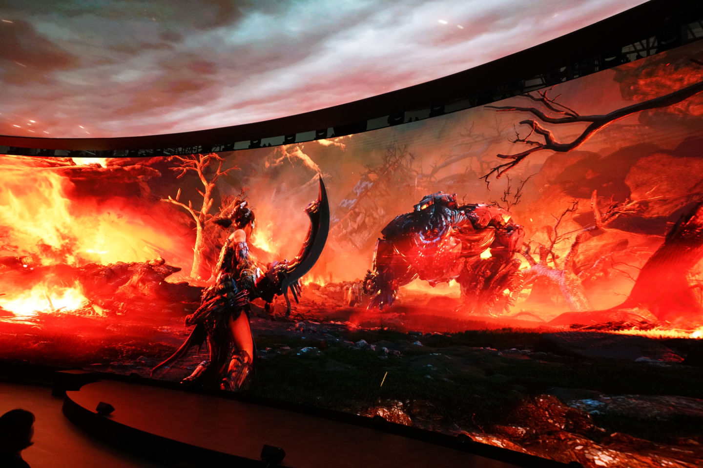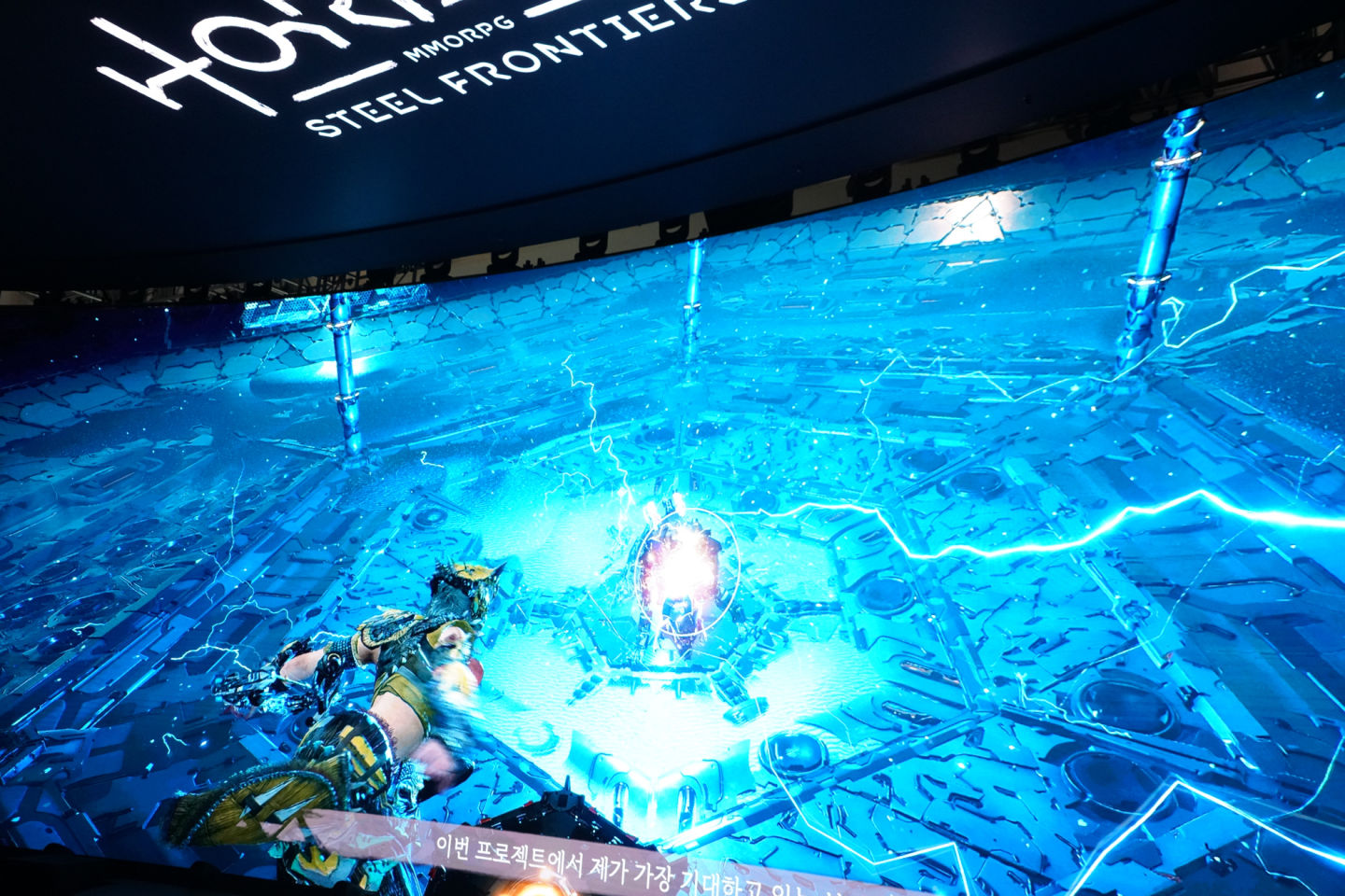 我們是第一次成為 G-STAR 的主贊助商,我們的初衷是想展現出足以成為「模範」的樣貌。我們有很多可以展示的遊戲。《餘燼重生之都》、《Aion 2》,還有我們正在做的《地平線 鋼鐵邊境》準備了很久... 就是想在 G-STAR 上以最帥氣的方式展現出來。所以關於展位靈感有部分來自拉斯維加斯的 Sphere... 我們想透過這種水準的影像... 在現場用帥氣的影片來介紹我們的遊戲。