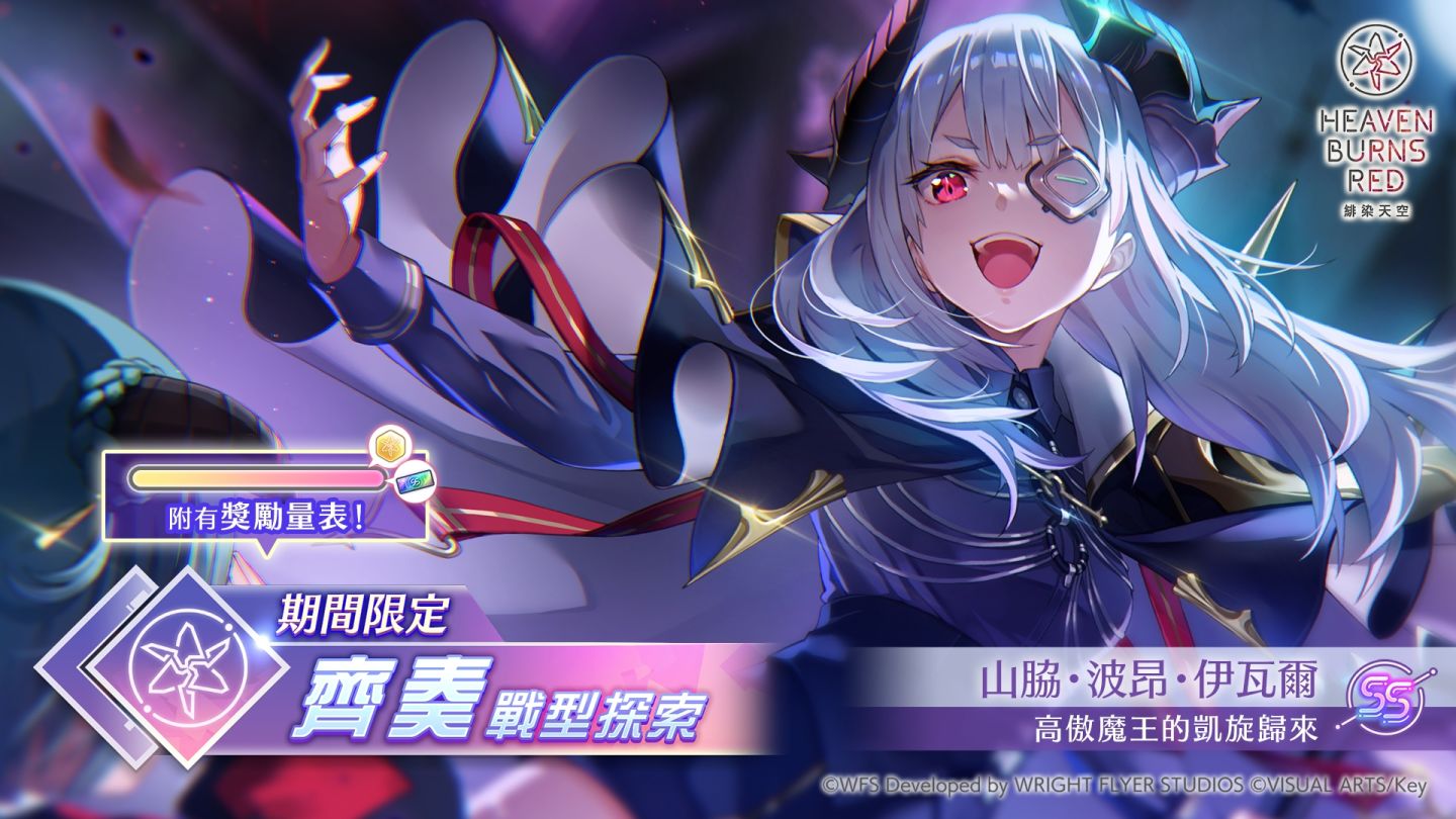 本次的「期間限定齊奏戰型探索」中,期間限定SS<靈魂共振>「[高傲魔王的凱旋歸來]山脇.波昂.伊瓦爾」經精選出現機率上升!「齊奏戰術型態」為擁有雙人角色登場特別插畫和技能特效的戰術型態。